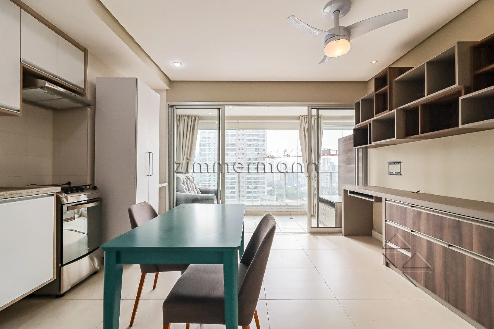 Apartamento com 47 m² muito bem distribuídos em living, cozinha americana integrada, ampla varanda, área de serviço, 1 dormitório com varanda e banheiro social. O imóvel está equipado com armários .