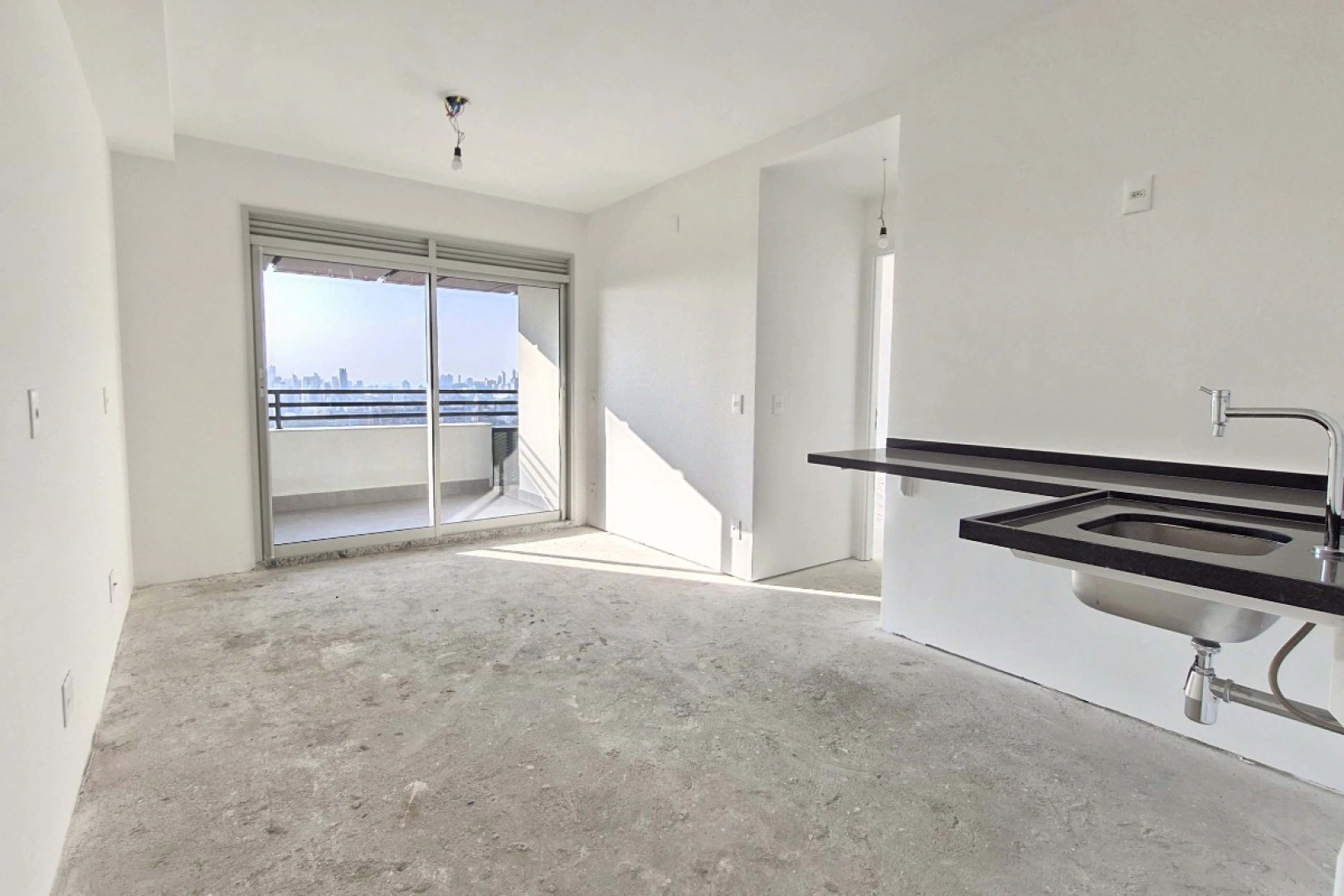 Apartamento novo, recém entregue, oferece living integrado, 1 suíte, lavabo, cozinha prática e área de serviço.