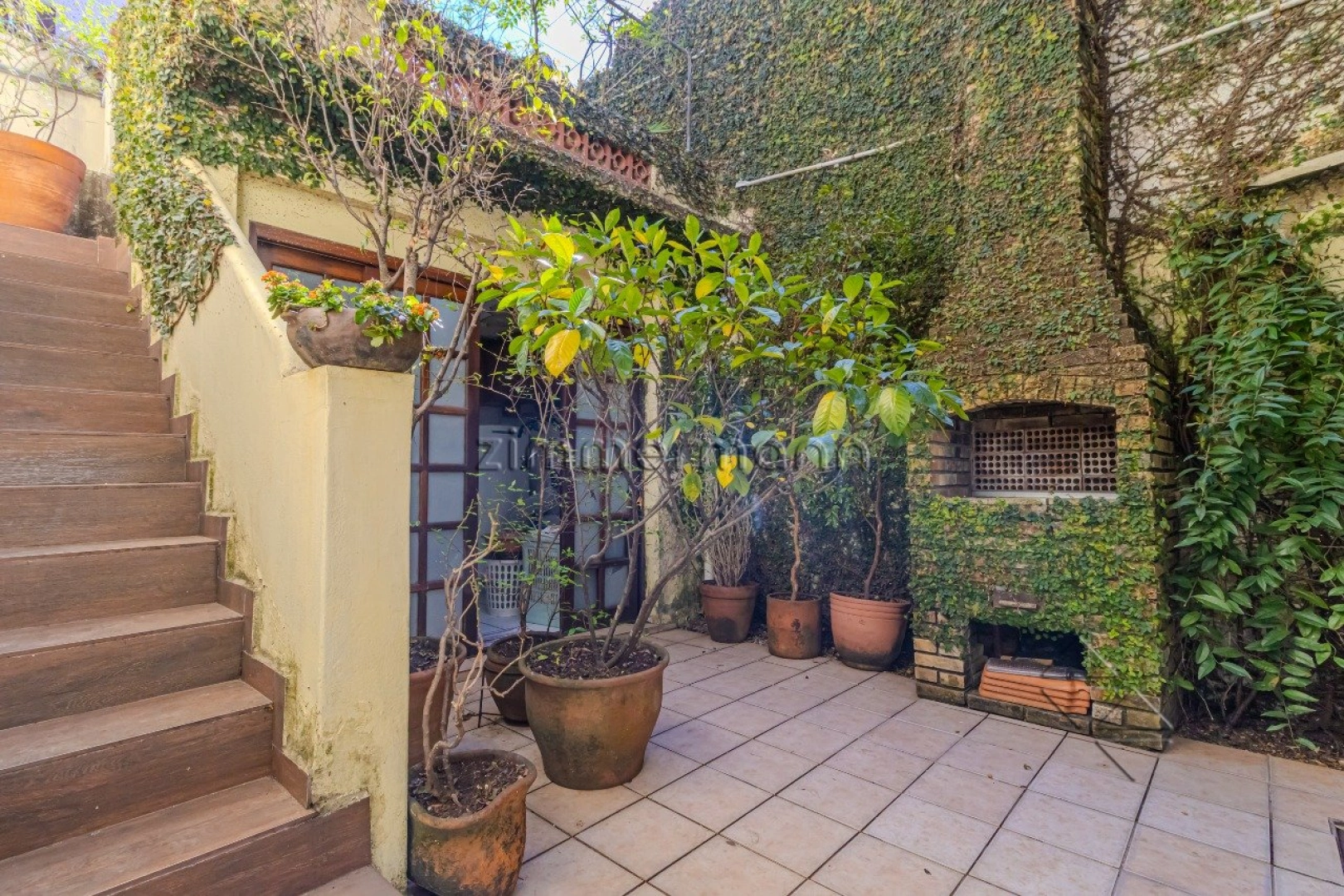 No piso térreo, a casa conta com uma ampla sala para 2 ambientes, com piso em desnível, combinando cerâmica e tábua larga, além de lavabo e sala de jantar. A cozinha possui armários planejados e há ainda uma edícula com lavanderia, solarium, dois quartos, banheiro social e quarto de empregada com banheiro. O imóvel dispõe de entrada lateral e quintal, garantindo praticidade e ventilação natural.