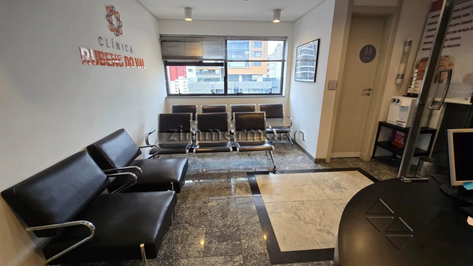 Exclusivo conjunto comercial ocupando todo o andar, com 144 m² em duas salas unificadas. O espaço oferece recepção, 4 salas, escritório, copa e 5 banheiros, com acabamentos sofisticados, incluindo piso de mármore.